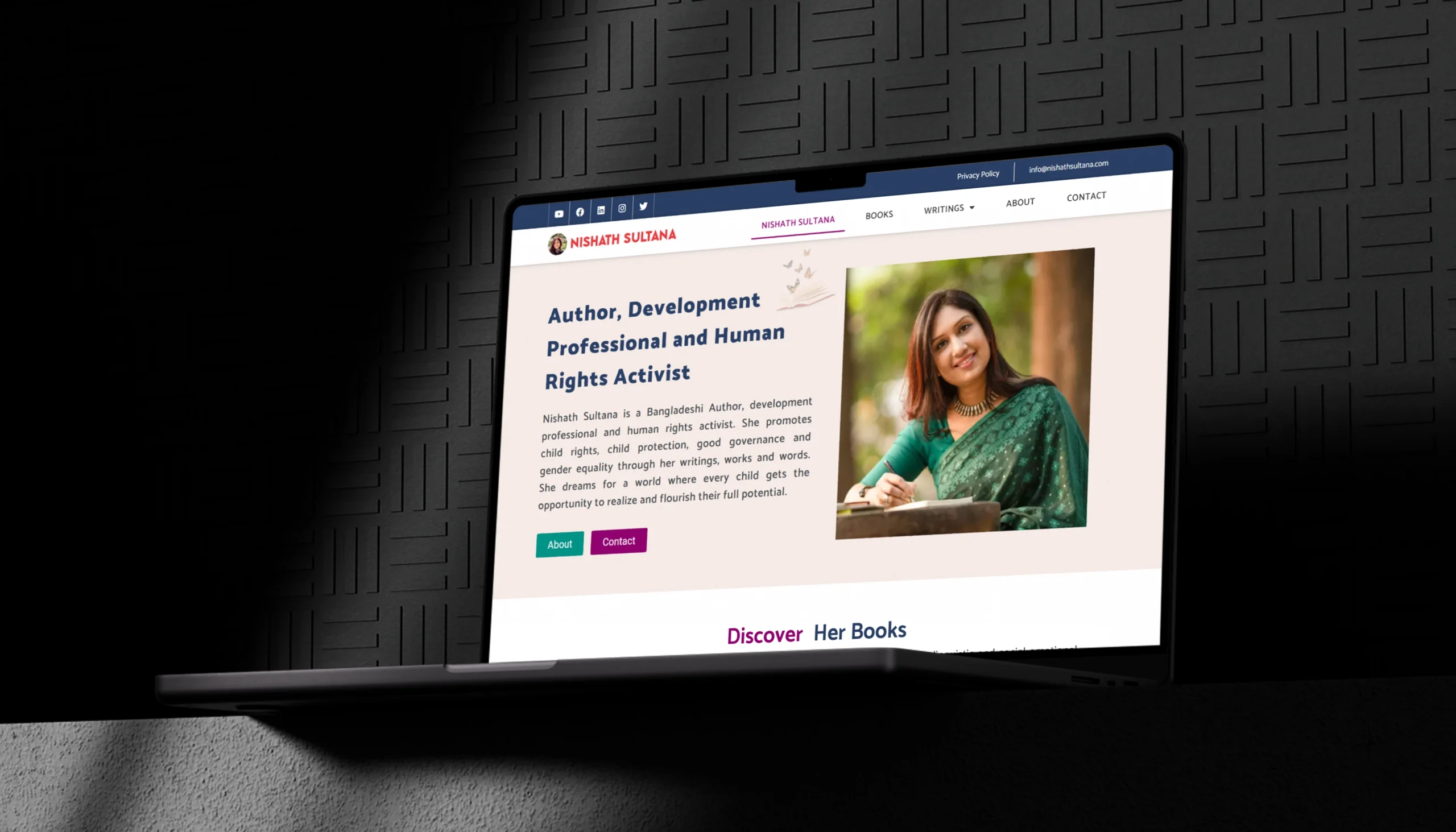 - Structured to support books, articles, press mentions and contact.