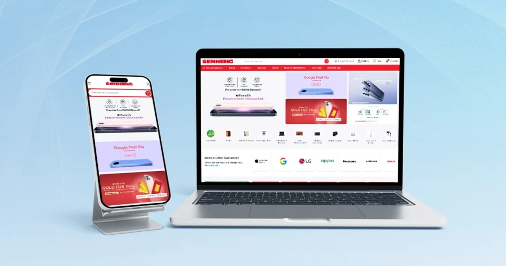 What makes Senheng a useful ecommerce benchmark is the blend of retail trust + online convenience. Their online store benefits from physical presence, warranties, service expectations, and a loyalty-like mechanics (e.g., “S-Coin” cashback described on their site).